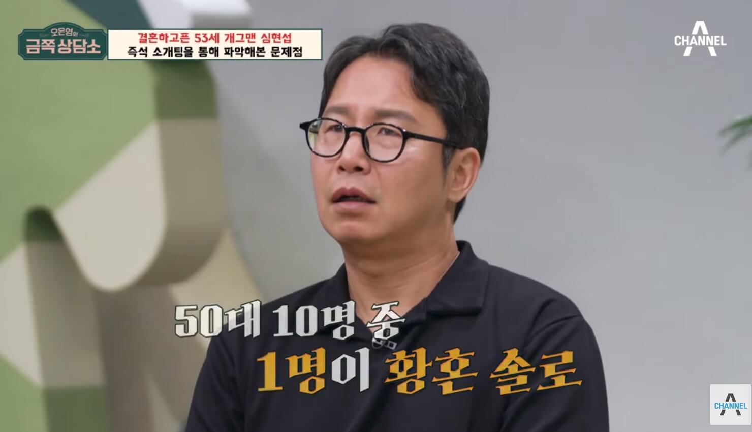 개그맨 심현섭은 현재까지 미혼입니다. 심현섭은 소개팅만 100번 이상 시도해봤다며 결혼을 위해 끊임없이 노력했음을 토로한 바 있는데요. 간절한 마음에 결혼정보회사까지 가입해봤지만, 생각보다 연예인이란 직업의 등급이 낮다며 허탈함을 내비치기도 했습니다.